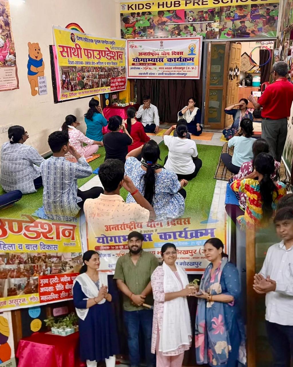 अंतर्राष्ट्रीय योग दिवस पर किड्स हब प्री स्कूल में योग अभ्यास का कार्यक्रम